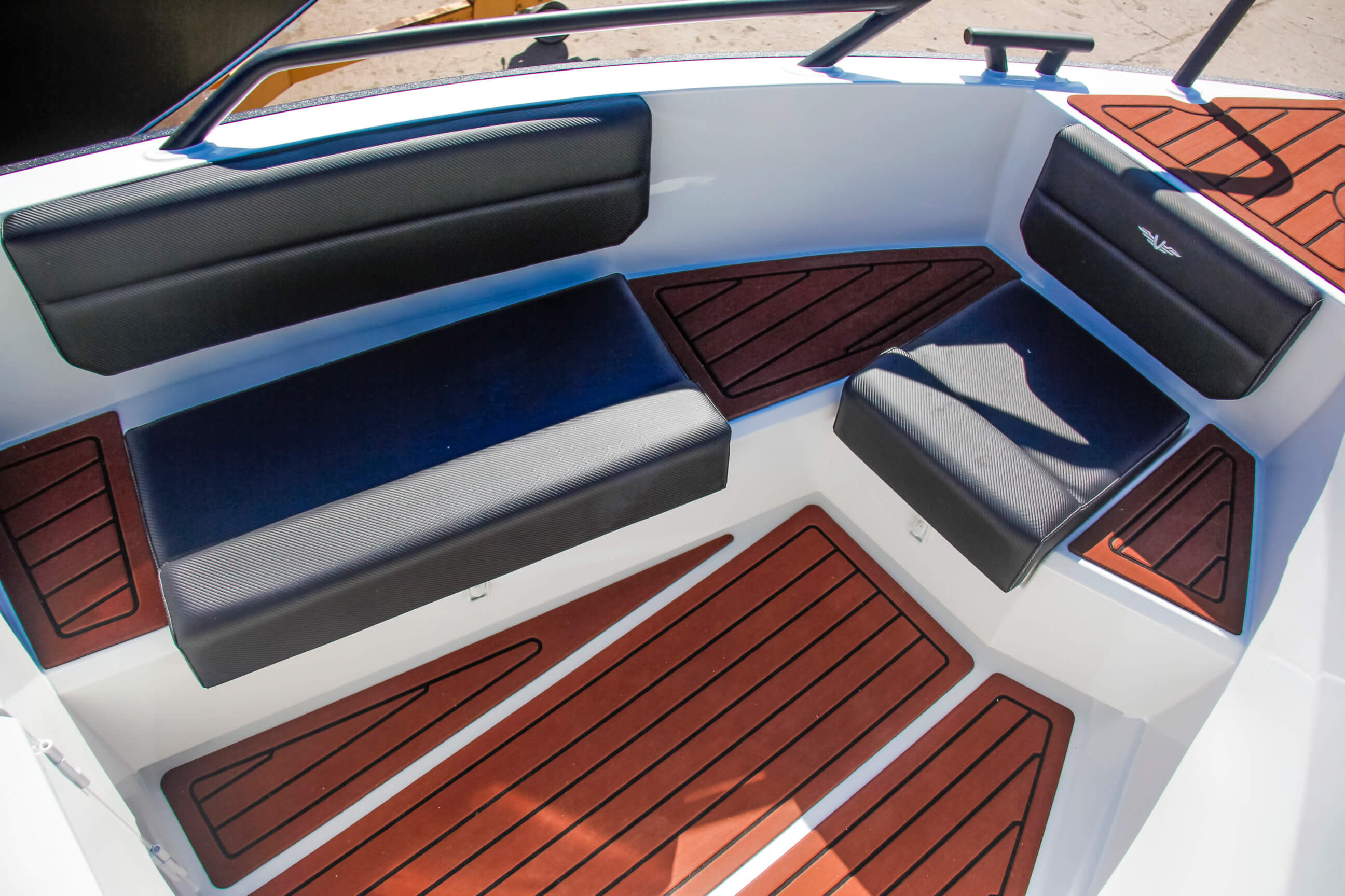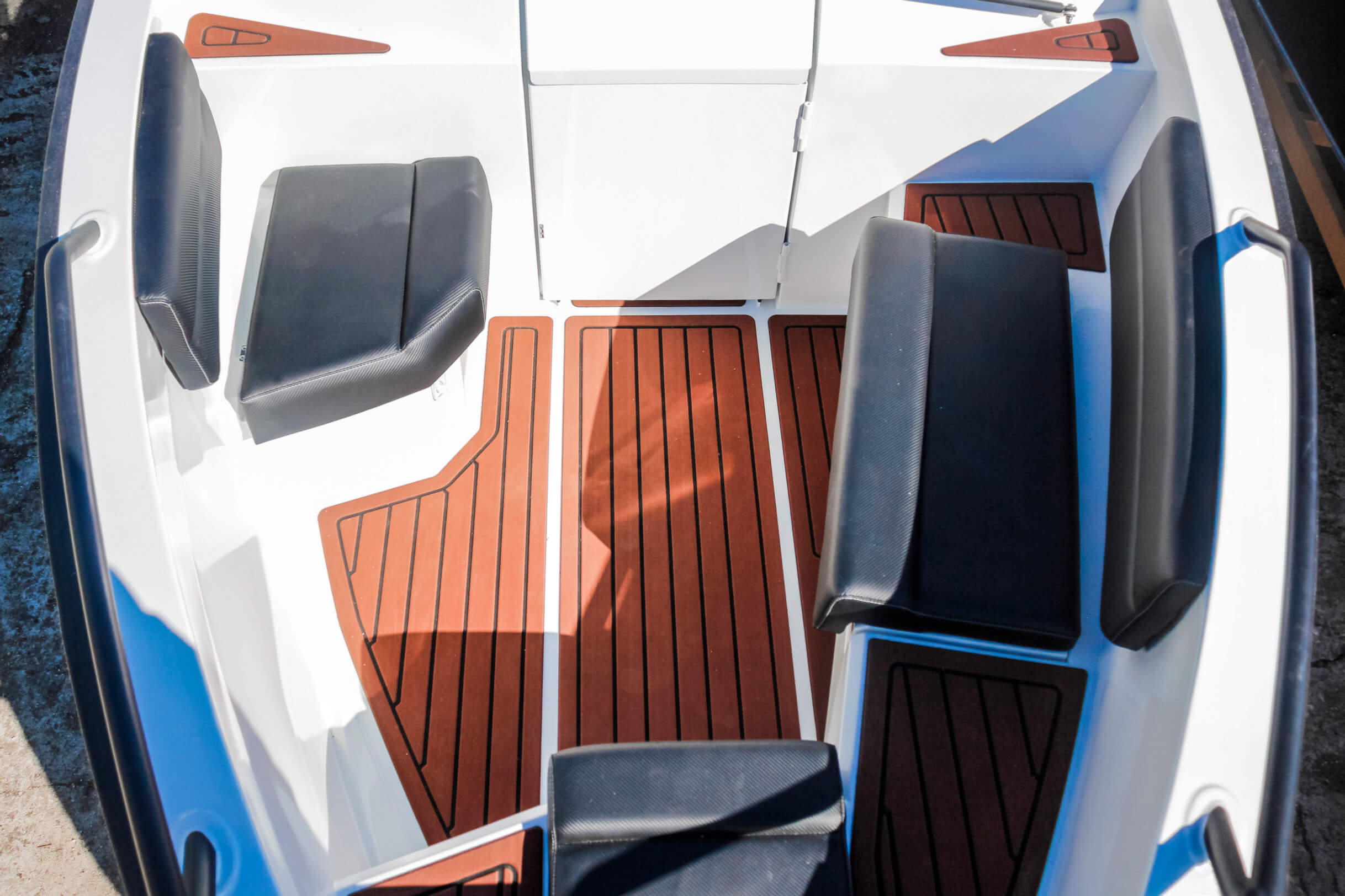 Ковролин на лодках профессиональной серии FishPro должен быть не только устойчивым к влажности и ультрафиолету, но и иметь специальную структуру, не позволяющую острым рыболовным крючкам цепляться за него.