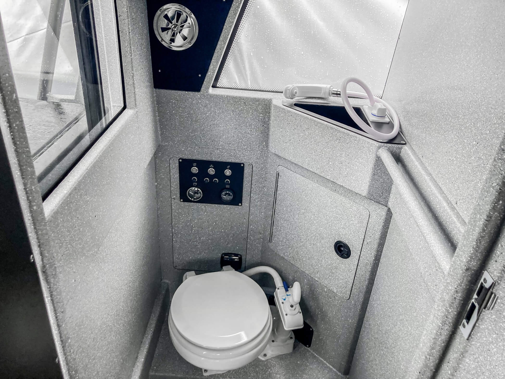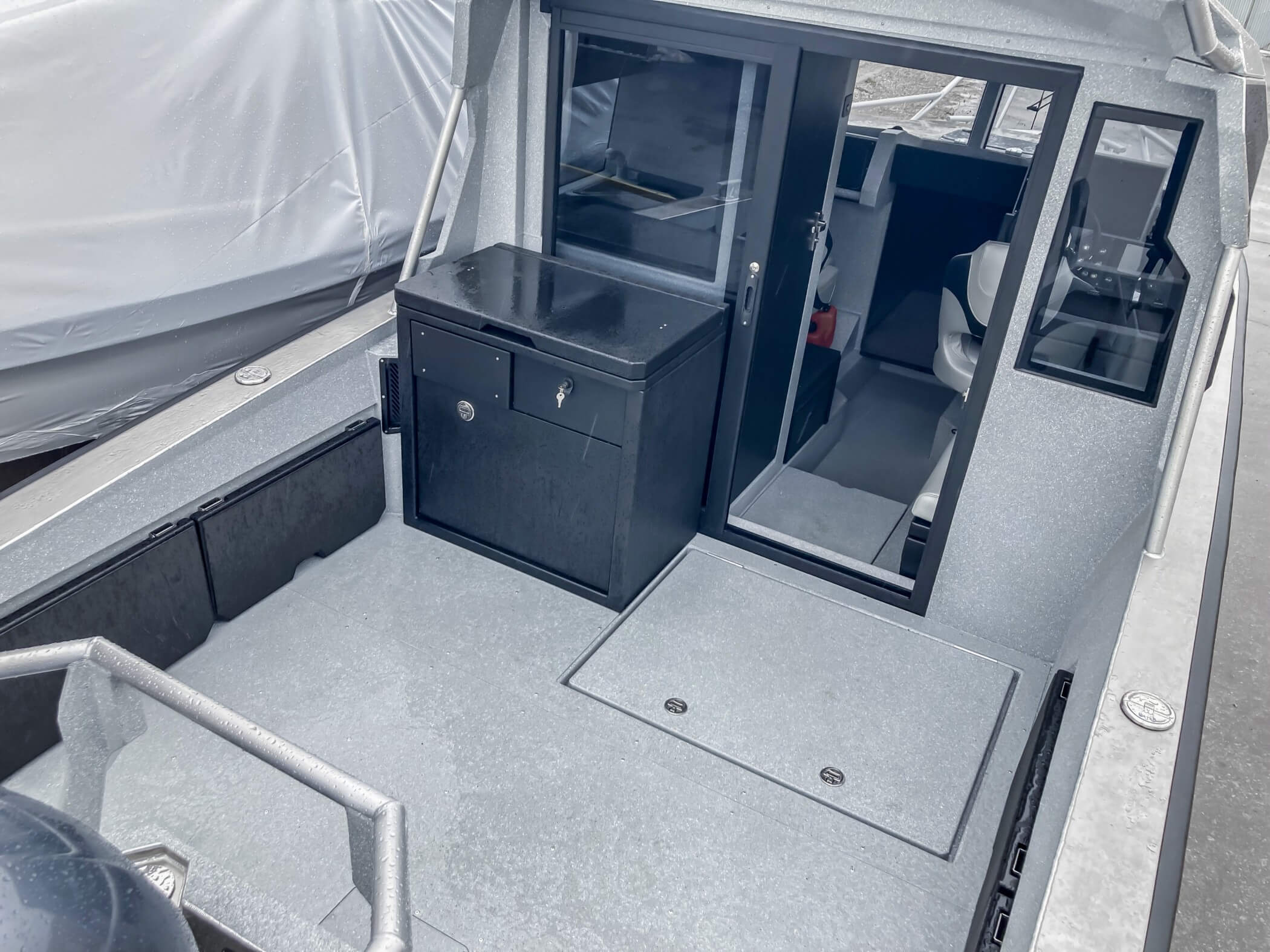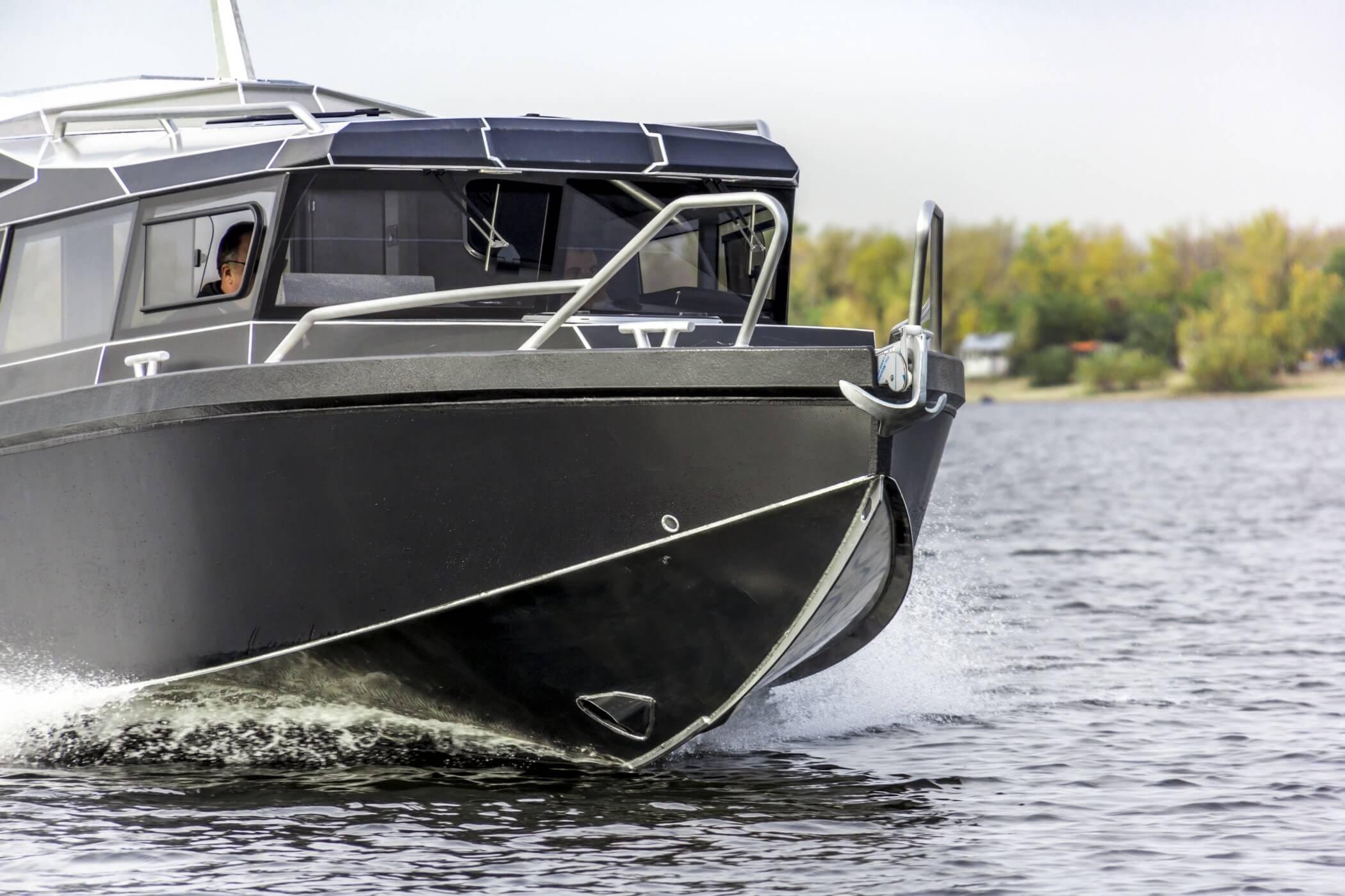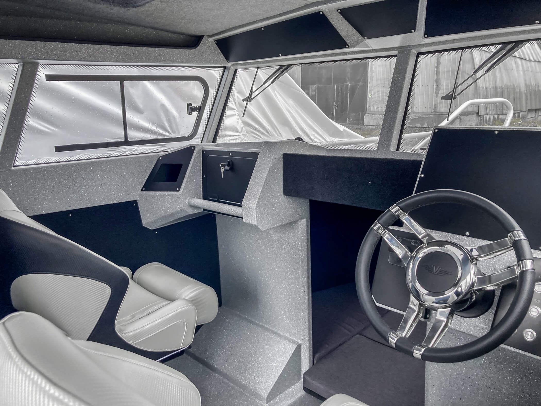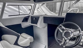 Ковролин на лодках профессиональной серии FishPro должен быть не только устойчивым к влажности и ультрафиолету, но и иметь специальную структуру, не позволяющую острым рыболовным крючкам цепляться за него.