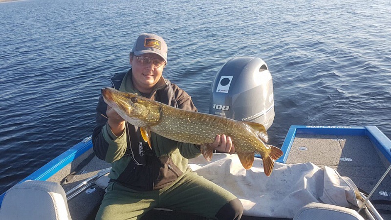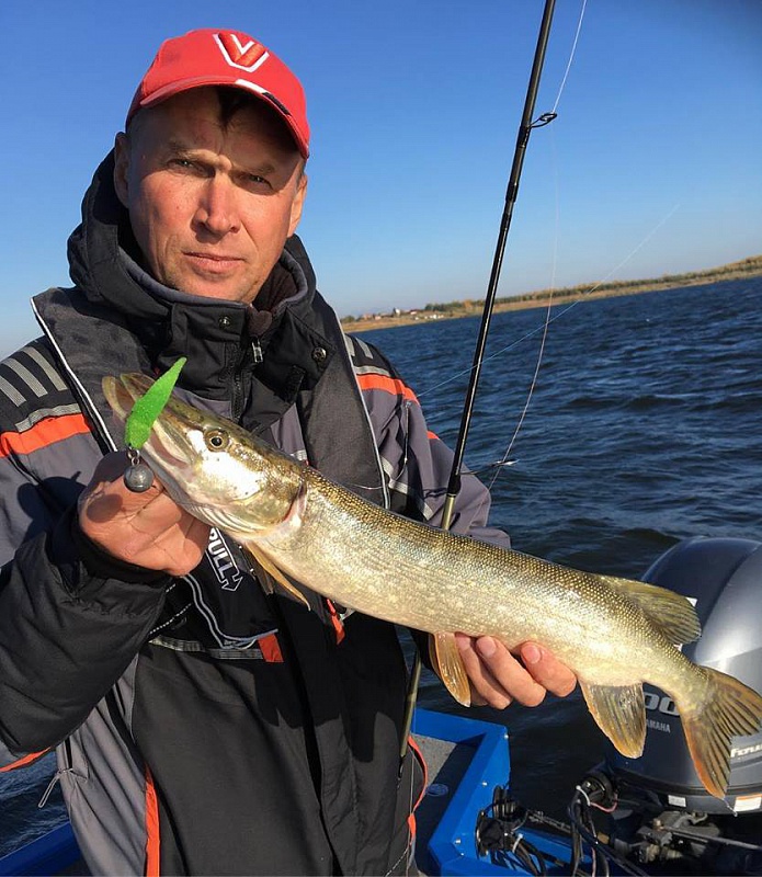 На ямах почти сразу же я подловил толстенькую «задвушку». Конечно же, на тот самый Easy Shiner. Через пару минут у напарника поклевка. Потом сход. Потом рыба. Потом поклевка у меня. Через заброс доловил. Хм, всего полчаса прошло, а у нас три ровных рыбы. И одна слитая. Принимаем решение оставаться здесь до конца. Следующий всплеск клева около 13-00 принес нам еще одну поклевку и тяжеленький сход уже у самой лодки. Вот это уже обидно. Обязаны были закрываться по такому клеву. Потенциально ловились нужные для борьбы 11-12 килограммов. Но уж очень неверные поклевки. Тычет носом, засекается за самый клювик… Радикальное облегчение массы груза выключало интерес. Возвращались обратно к унции – снова получали хлесткие удары… мимо. С уловом слегка за семь килограммов и тремя щуками финишируем