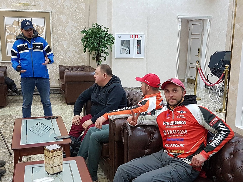 Идем отдыхать, завтра тяжелый день. 23 октября официально был «Днем Тишины», но спортсмены и участники турнира знают, что на самом деле это далеко не так. Хочу внести пояснения для зрителей, болельщиков и просто друзей что это как правило очень напряженный и тяжелый подготовительный день для PROанглеров, открытие турнира, собрание капитанов, подготовка снастей и экипировки к турам, проверка лодок и оборудования и многое другое, я думаю со мной все участники согласятся. Ну а в нашем случае еще и установка якоря. Хочу поблагодарить ребят из компании Мотор-сервис за помощь в установке, очень правильное решение организаторов привлечь специалистов, помощь колоссальная и в некоторых моментах незаменимая.! Итог дня как выжитый лимон. В номере появились перед ужином в 19.00, далее ужин и монтаж приманок. В 22.00 садимся обсуждать маршрут на тур, поминутно его расписываем, 15 точек в 8ми часовой промежуток. Идем отдыхать.